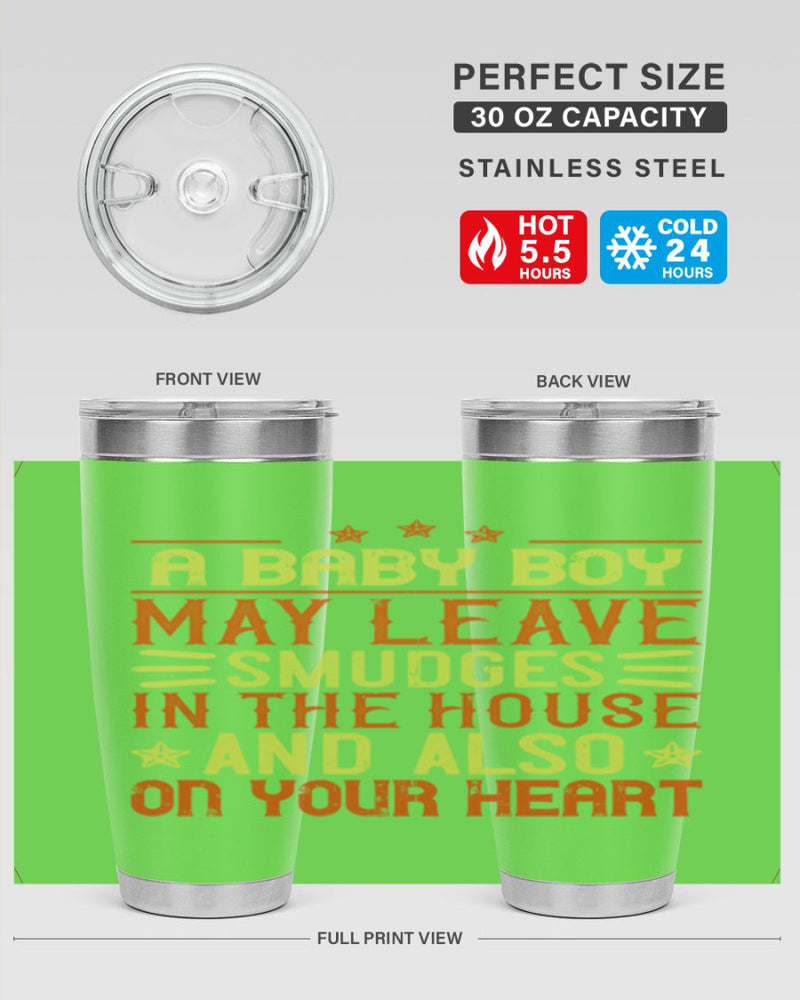 A baby boy may leave smudges in the house and also on your heart Style 150#- baby- tumbler