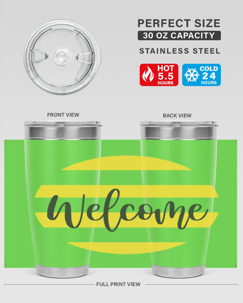 Welcome and Yellow strips565#- spring- Tumbler