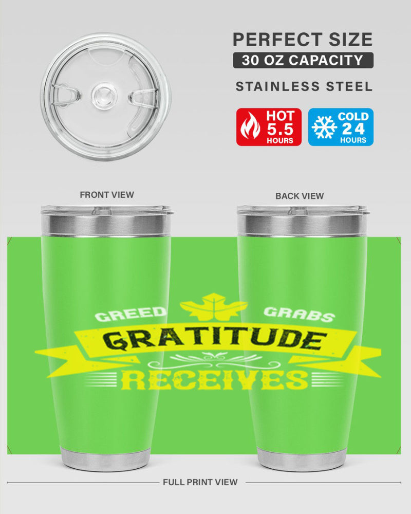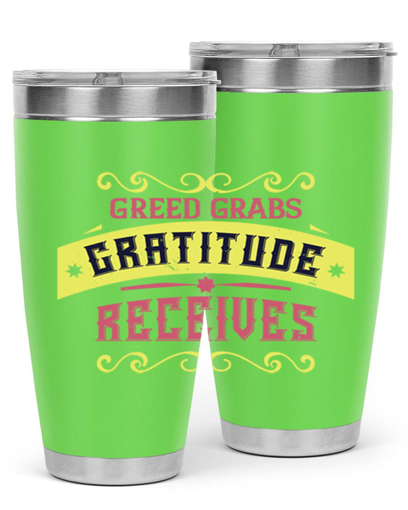 greed grabs gratitude receives 38#- thanksgiving- Tumbler