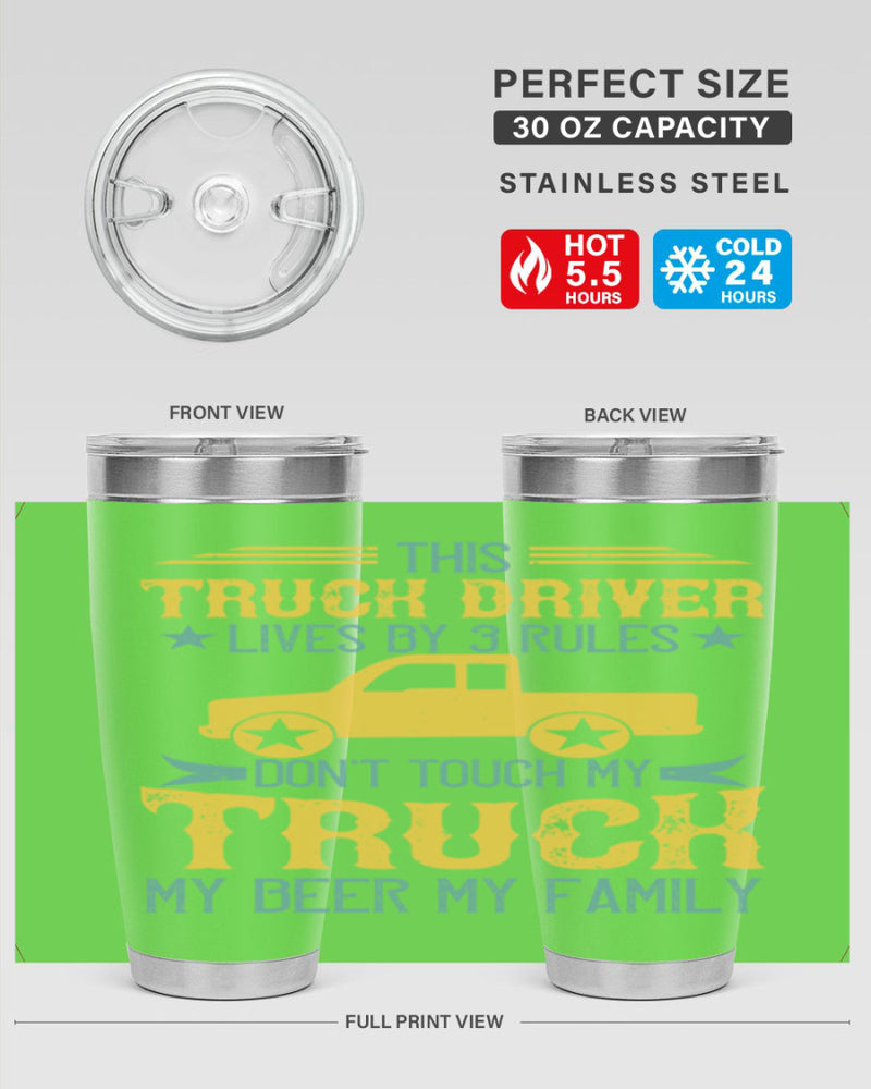this truck driver lives by rules dont touch my truck my beer my family Style 20#- truck driver- tumbler