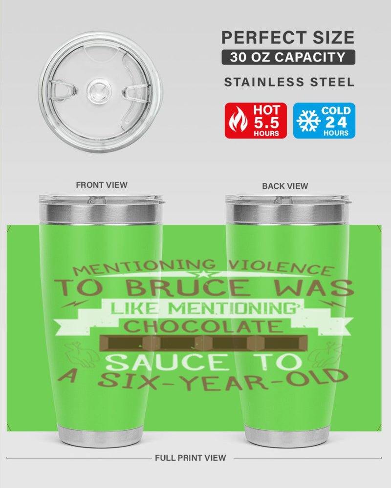 mentioning violence to bruce was like mentioning chocolate sauce to a sixyearold 23#- chocolate- Tumbler