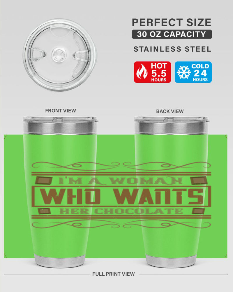 im a woman who wants her chocolate 32#- chocolate- Tumbler