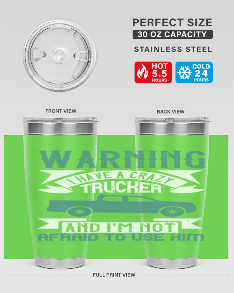 warning i have a crazy trucker and im not afraid to use him Style 9#- truck driver- tumbler